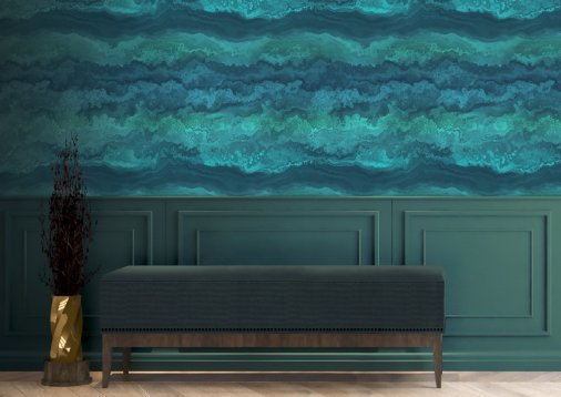 Sära ja sädeluse tekstuuri, rahulike türkiissiniste ja siniste toonide ning vabalt voolava kujunduse koosmõju teeb sellest tõeliselt inspireeriva seinakatte.